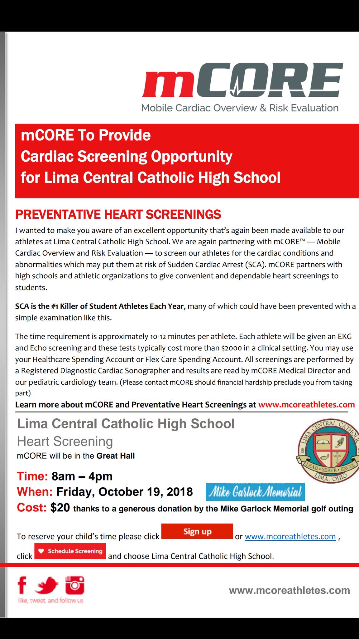 Get your child screened here at LCC! This is a great opportunity, take advantage of this. Thanks to the Mike Garlock Memorial for keeping the cost way down. Time slots are filling up.